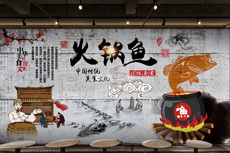 火鍋店裝修期間的墻繪是近幾年比較流行的手工藝術彩繪,因擁有較強的3D立體視角沖擊力,再加上其隨意發揮的特性,個性的裝飾風格盡顯店內。都還別說,正是因為這些元素融合才把傳統民俗藝術與商業完美結合。下面就由火鍋店裝修公司朗煜關于創意墻繪藝術圖案做一些分享,親們不要走開喲!末尾有彩蛋~