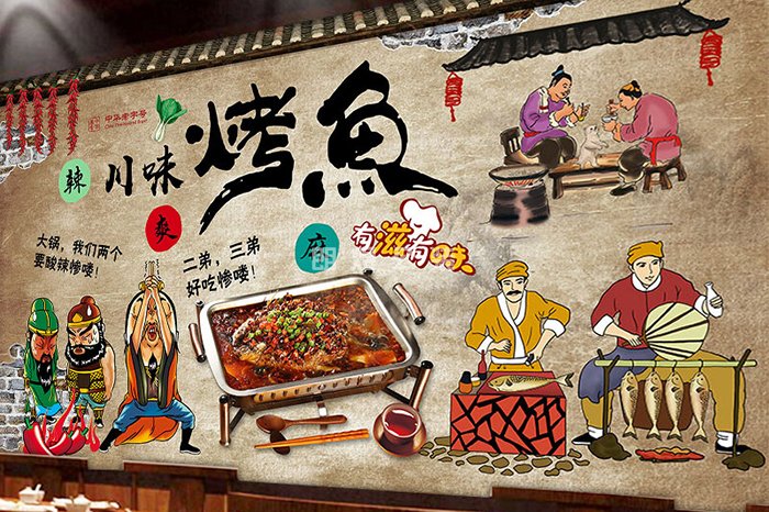 高清火鍋店墻畫創意墻繪 藝術彩繪壁畫圖案大盤點